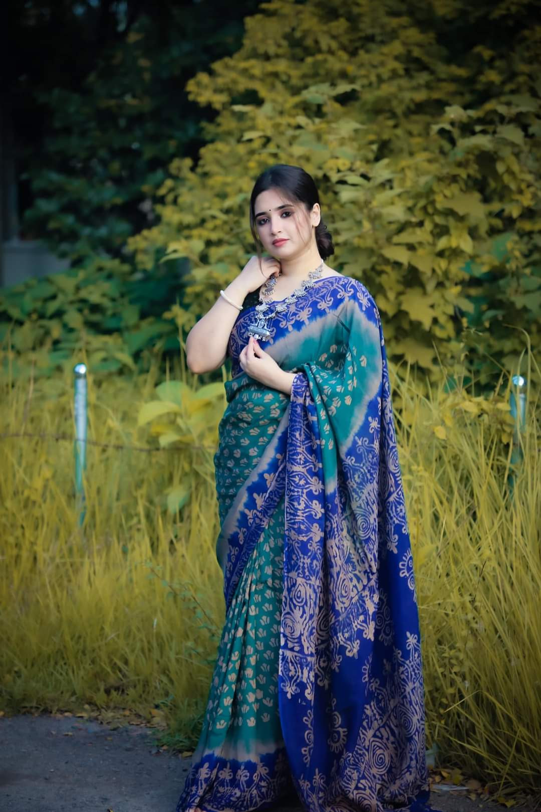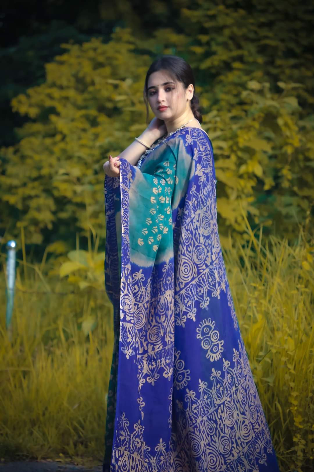 দেখতে অসম্ভব সুন্দর এই ১২.৫ হাতের প্রিমিয়াম বাটিক সিল্ক মসলিন শাড়ী খুবই প্রিমিয়াম ও আরামদায়ক