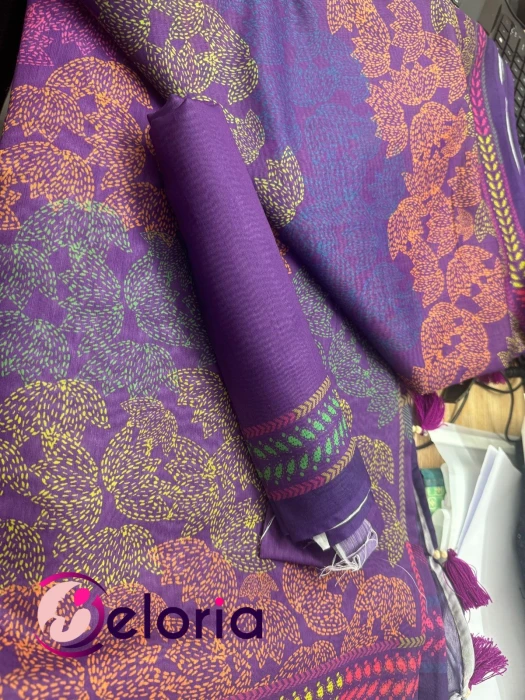 সেমি মসলিন সিল্ক শাড়ী ব্লাউজ পিস সহ