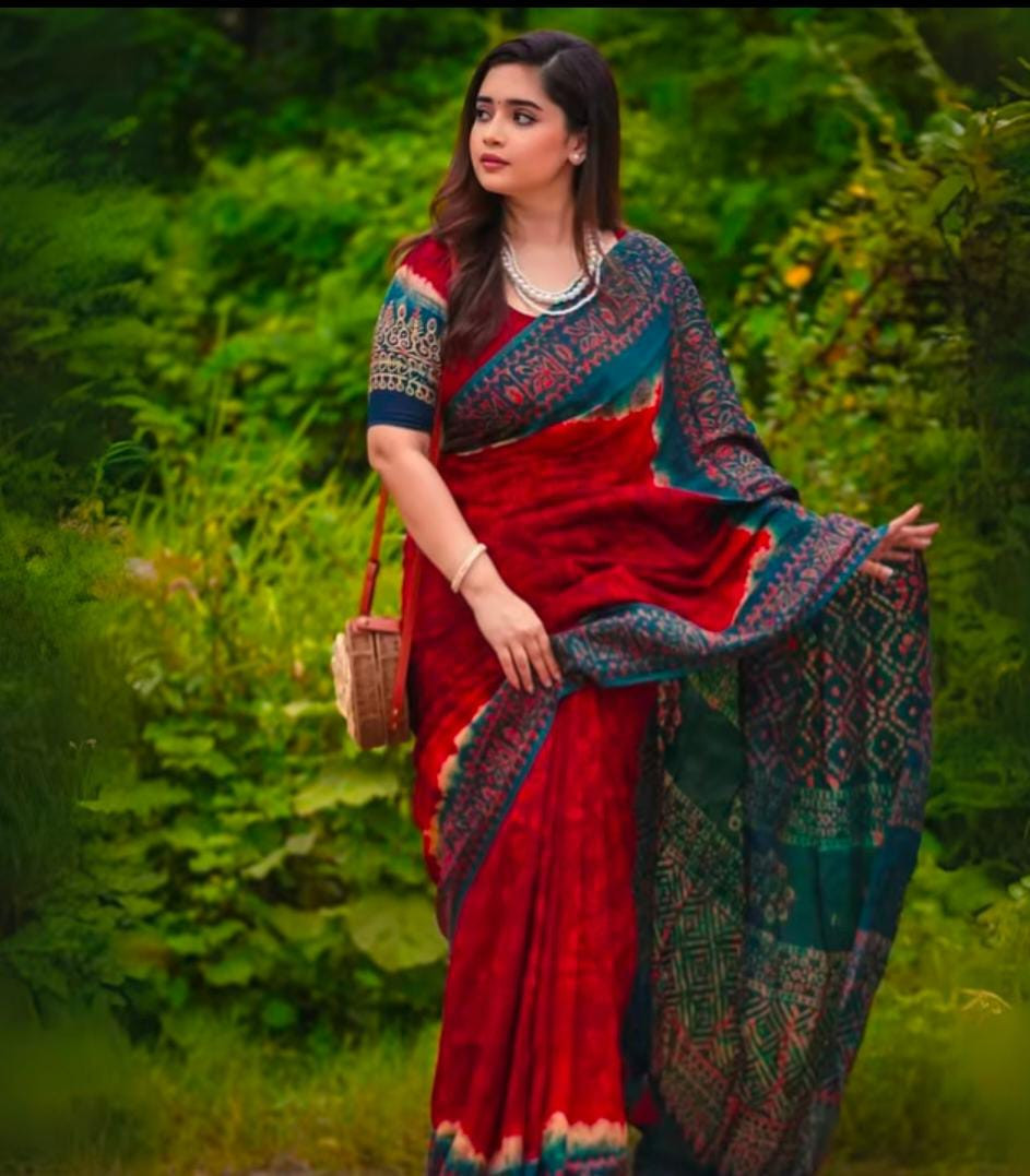 দেখতে অসম্ভব সুন্দর এই ১২.৫ হাতের প্রিমিয়াম বাটিক সিল্ক মসলিন শাড়ী খুবই প্রিমিয়াম ও আরামদায়ক