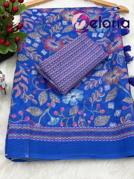 সেমি মসলিন সিল্ক শাড়ী ব্লাউজ পিস সহ