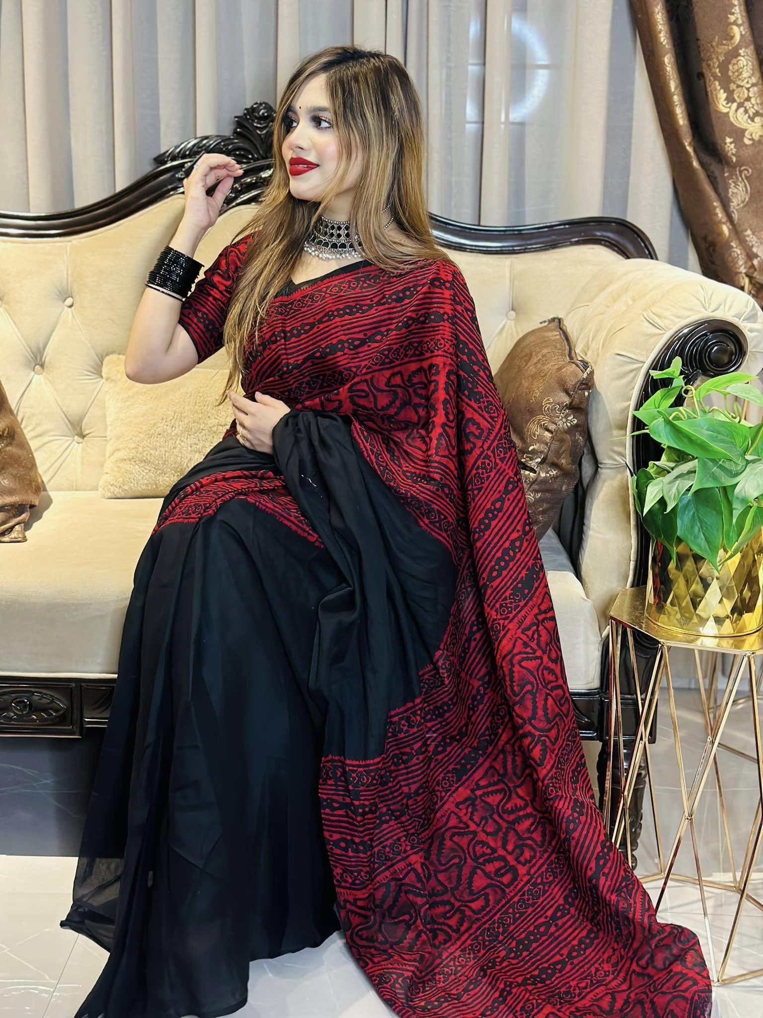 আধুনিক বাটিকের কাজ করা৷একদম সফট কাপড়। রং পাকা।আরামদায়ক, আকর্ষণীয় ডিজাইন।প্রায় ১৪ হাত শাড়িসাথে রানিং ব্লাউজ পিস সহ।