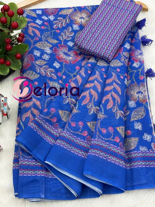 সেমি মসলিন সিল্ক শাড়ী ব্লাউজ পিস সহ