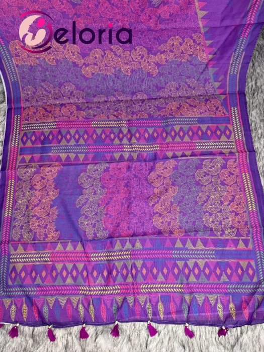 সেমি মসলিন সিল্ক শাড়ী ব্লাউজ পিস সহ